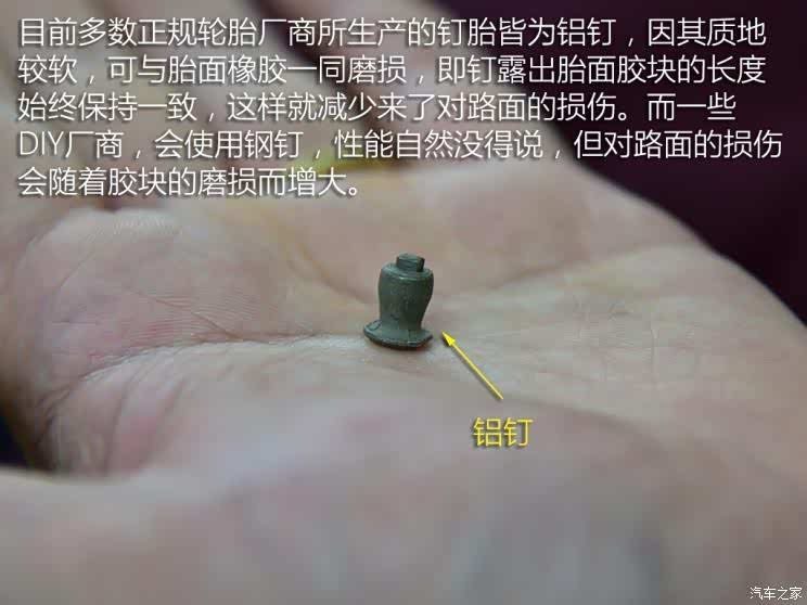 对于冬季胎或者说任何乘用车轮胎来说,外功就是花纹。而今天我们主要聊的是冬季胎技术,在当今轮胎行业,花纹设计已经不是什么特色的亮点了。说模仿也好,说抄袭也罢,一款轮胎出厂后有心人完全可以复刻出一套,所以花纹设计并不算什么硬货,你有我有大家有的时代,花纹已经不值钱了。不过有的东西别人不一定有——钉胎。
