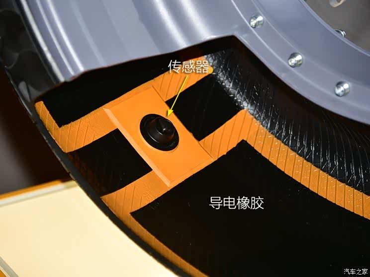 玩笑归玩笑,这些信息是通过何种方式传输的呢?是导电橡胶,在轮胎内部铺了完整一圈的导电橡胶,当金属刺穿后,电路发生变化;当轮胎振动频率改变(磨损)后,后台数据分析。通过导电橡胶来完成整个信息的传递。据悉,Contisense技术到具体应用还需4、5年的时间。其实看到这个周期我猜想这是为了构建庞大的数据库而给出的预估期限,与前两家轮胎企业相比,5年后,数据库的强大与否决定了客户群体是否庞大。
