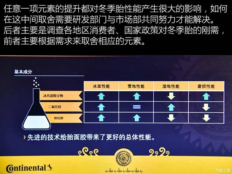 为了达到冬季胎的特性,它所修炼的内功又与夏季、四季胎不同——失去一些才能得到一些。冬季胎放弃了干地的舒适、静音及少部分操控性能,以此来获得冰雪路面驾控的提升,那么从配方角度来说,它放弃了什么了呢?