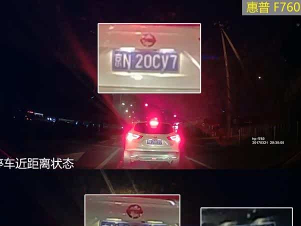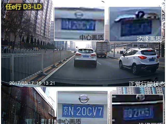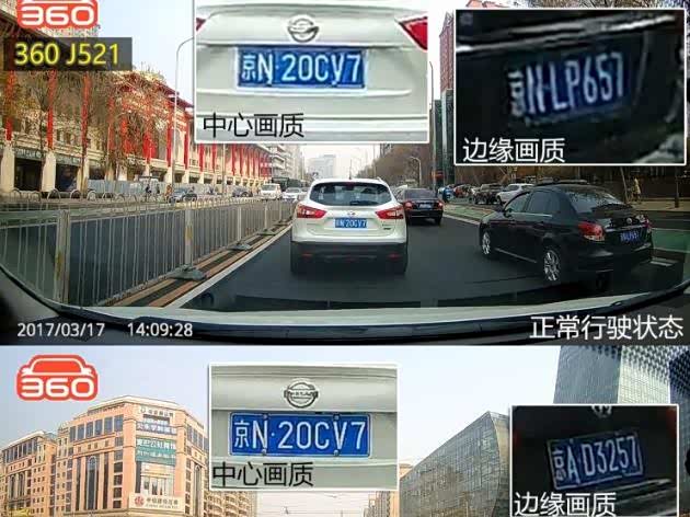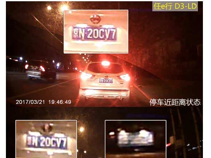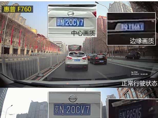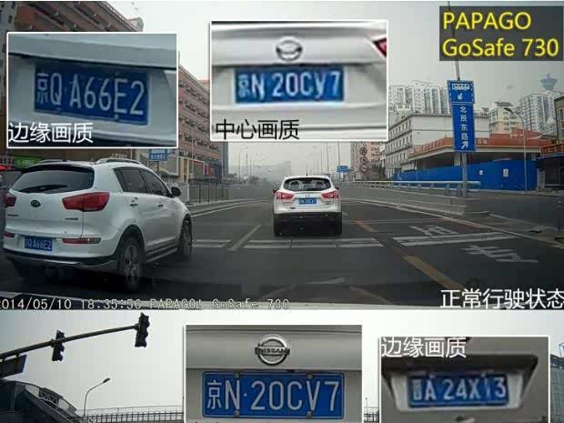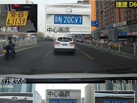 从上面的原画面截图可以发现,PAPAGO、捷渡、360的画质排在了第一梯队,无论是正常行驶的抓拍画面还是等红灯时截取的近距离画面,中心画质和边缘画质都可以让人满意。而惠普则紧跟其后,边缘画质方面差了一些。凌度和任e行的画质排在最后,近距离的解析度还可以,一旦走起来拉开点距离,就很难辨别中心和边缘的车牌号了。