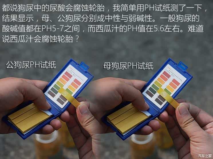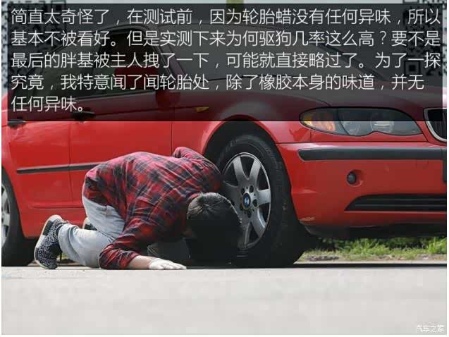 通过测试不难看出,强刺激性气味与及时清洗尿渍都可有效阻挡轮胎被狗袭击。但从目前的测试结果来看,我们买到的两类驱狗用品并不能完全避免狗尿的骚扰,相反无刺激性异味,且有清洗作用的轮胎蜡可让轮胎逃过一劫。