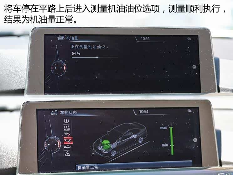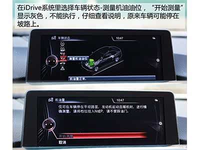 现在很车型都配备电子机油尺,有些网友质疑电子机油尺测量的准确性,随着电子技术的不断发展,可以说电子机油尺测量准确性不断提高。在现在配备电子机油尺的车型中,测量步骤和条件各不相同,有的是平地热车后熄火几分钟后通电查看,有的是平地怠速时查看,下面例举2014款宝马328i的电子机油尺查看方法。