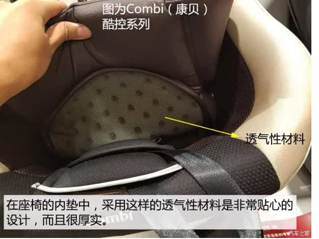 需要说明一下,这个材料是Combi(康贝)品牌的专利,只有康贝旗下的部分座椅才会应用。●坐垫一定要用透气性好的填充物!有时候带着宝宝开车要开很久,哪怕只有半个小时,本来车上的空气就不太流通,再加上路上颠簸,万一堵车还走走停停,宝宝会很难受,如果他再坐在不舒适的座椅里,可想而知,他有多么受罪。在确定了座椅用了什么高科技填充物之后,咱们还要看看坐垫的透气性。