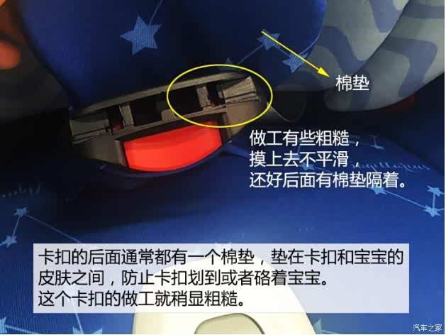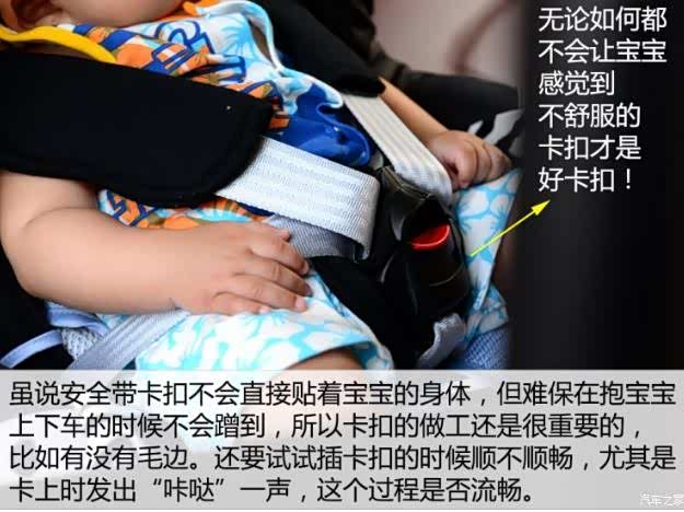 ●挑选时还应该注意哪些细节?除了以上这些重点之外,还有一些小细节,在各位宝爸宝妈挑选儿童座椅的时候,要注意一下。-肩带:是否有防滑、是否方便调节肩带的好坏不仅关系到宝宝是不是舒服,还关系到他的安全——您可能要问了:肩带只要结实不就行了?其实不然,肩带的好坏,直接决定宝宝在遭遇急刹车的时候,肩颈和身体的被保护程度,好的肩带不仅可以减少宝宝的位移,还能有效减少冲击力。