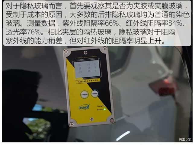 对于很多车型的隐私玻璃而言,多为普通的颜色玻璃。经过测量,颜色更深的隐私玻璃对于紫外线的防护不佳,但对于红外线的防护提升明显。也就是说,坐在后排的乘客感受虽然更加凉爽,但时间久了皮肤仍然会晒黑(因每辆车玻璃的隔热性能不同,所以还需单独判断其是否需要贴膜)。