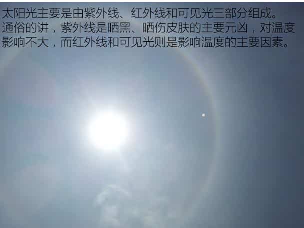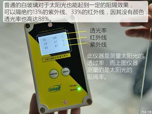 首先我们要了解太阳光主要分为三大类,紫外线、红外线和可见光。简单来说,紫外线是影响皮肤晒黑的重要因素,短时间的紫外线照射可以杀掉皮肤表面上的细菌,但长时间照射就有可能晒伤皮肤甚至引发皮肤病,还会使车内饰部分加速老化。根据热量占比例划分,红外线占的比重最高,为53%,可见光和紫外线则分别占比为44%和3%,所以在阳光直晒在皮肤时感受到的大部分热量都来自于红外线和可见光。
