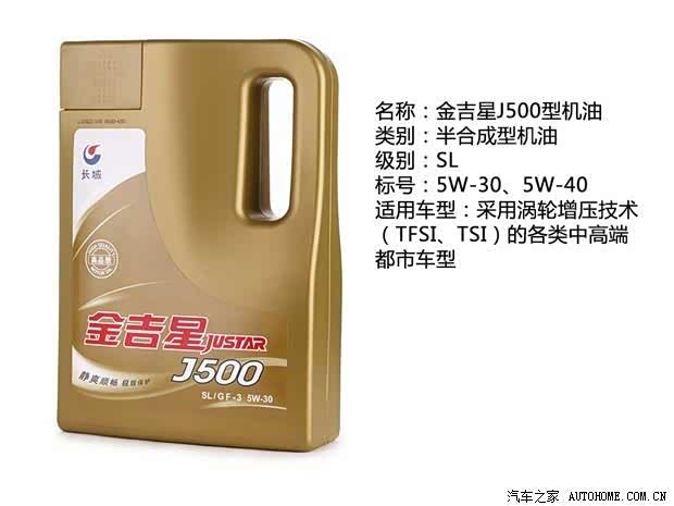 金吉星J500型机油相对于上面的J400而言,更加适合目前的缸内直喷、涡轮增压发动机,这款机油更加注重对发动机的长效保护能力,并且拥有出色的低温启动性能,可以适应寒冷地区的用车需求,由于采用了环保配方,可以有效延长三元催化器的使用寿命,提高燃油经济性,它同时具备了优秀的抗磨损能力,对于那些比较注重发动机长效保护的车主而言,这款机油是比较理想的选择。