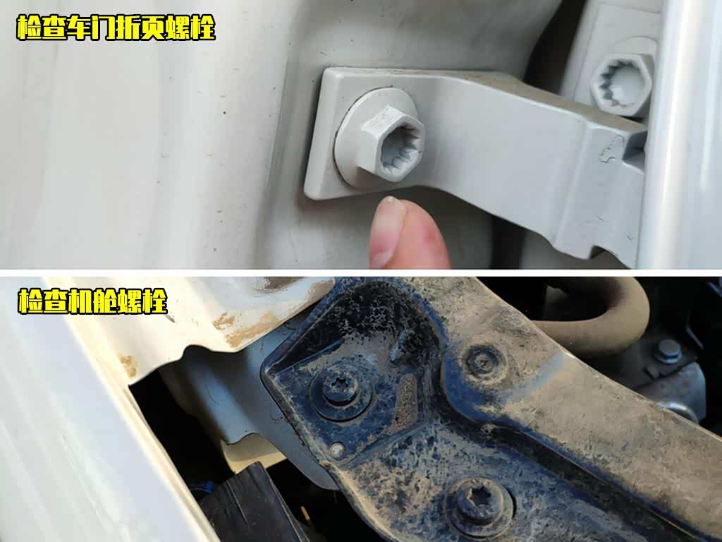 对于车门螺栓和机舱螺栓,大多数车型都会在生产时先安装后喷漆。那么这些螺栓表面就会有油气的覆盖。如果这些螺栓存在拆卸的痕迹,我们就要重点观察周围的钣金是否存在修复和喷漆。