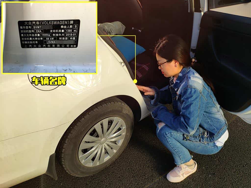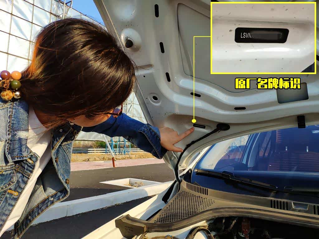 查看车辆名牌,检查名牌周围是否存在喷涂和从新胶结的情况。并使用行驶证与名牌进行核对。查看信息是否准确。