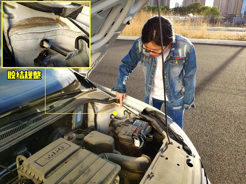 很多车型在出厂时,都会在机舱盖内侧粘贴车架号标贴。而如果这台车因事故更换过机舱盖,这个标贴就不会存在。