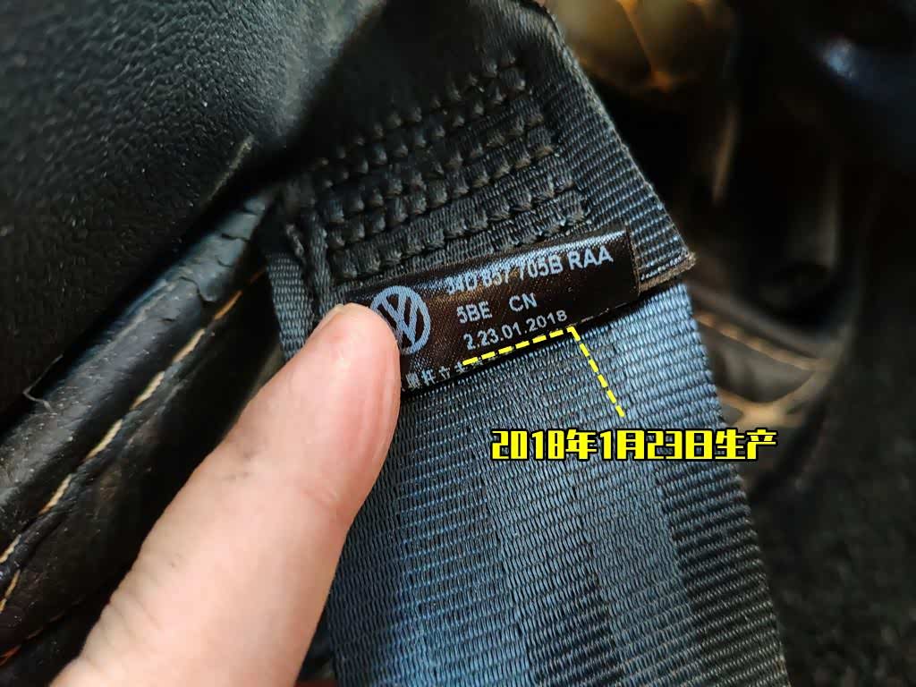 大多数车型的安全带根部都会有生产日期。检验时我们查看这个标贴,如果生产日期与车辆生产日期不符,证明安全带更换过。而更换安全带的原因一定是出现过事故导致安全带抱死。后果你可想而知。