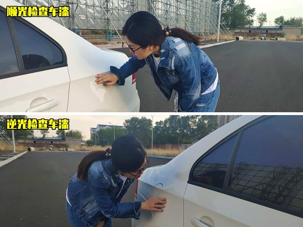 漆面是衡量一台车是否有大事故的主要部位。对于没有经验的车主来说,也一样可以看出一些端倪。我们将车辆分别停放在顺光和逆光下,观察漆面与漆面间的色差。并且观察漆面是否存在橘纹状和淌漆情况。如果有条件可以使用漆面厚度仪检查漆面厚度,如果经历过喷漆,那么某些部位的漆面厚度将异常的高。