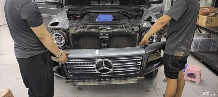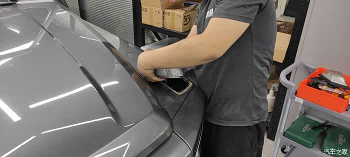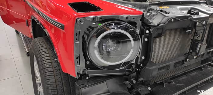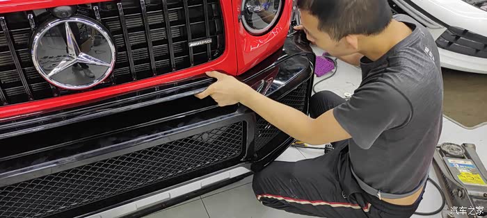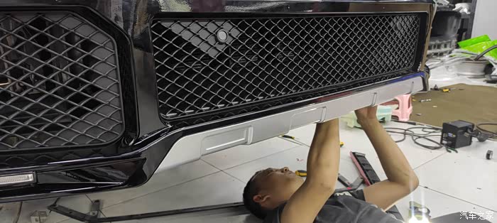中网灯眉前杠大灯施工过程