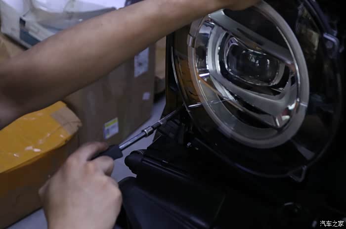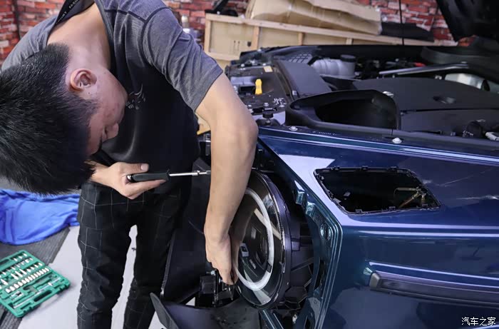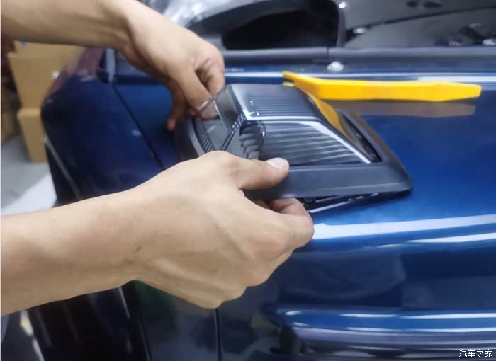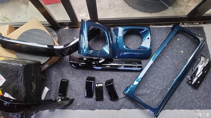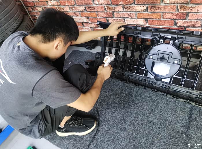 新的中网框和灯罩保持和车身颜色一致的烤漆,因为要升级暗影之翼版所以轮眉变成黑色。