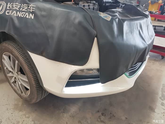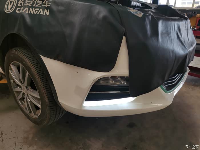 被蒙住了头,这样能够防止车漆被工具划花。