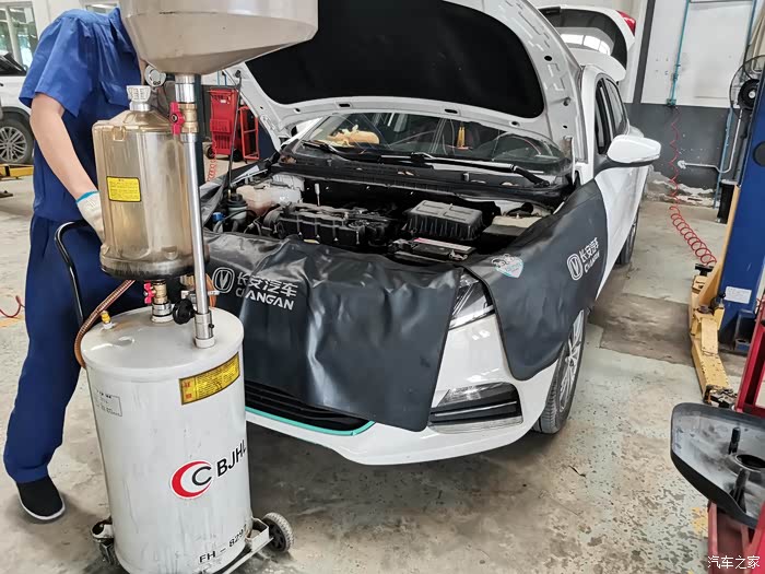 直接就上工位了,师傅正在帮忙把废旧的机油放出来。