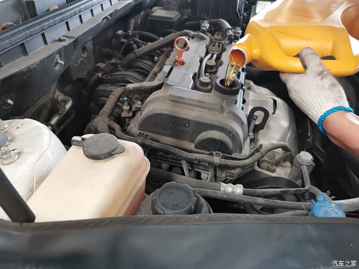 准备加注机油,还加了发动机保护剂。