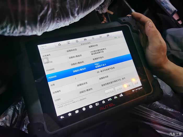 发现二处故障,节气门有点故障和电子中央电气系统故障。