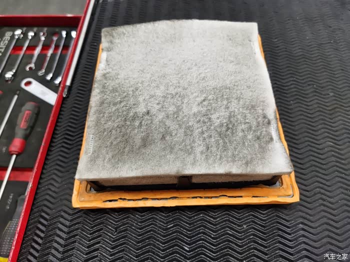 反面的空气滤芯很脏。这是去年的空气滤芯,已经脏的不成样子。