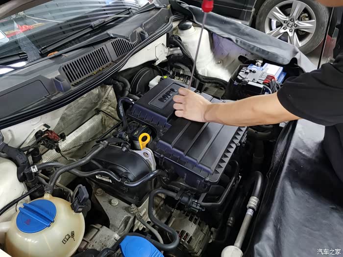 检修师傅开始安回空气滤芯盖板。清洗后的节气门焕然一新。
