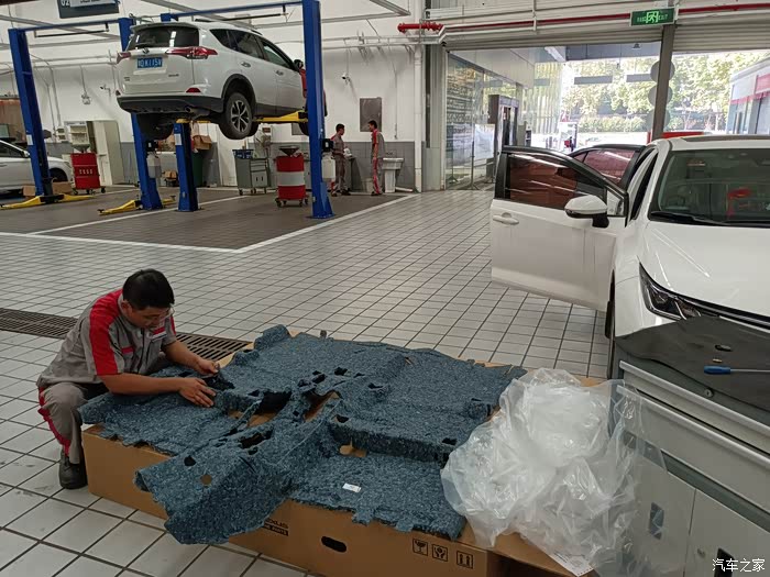 你怎么修进水车还是比较好奇的?这台进水车要换掉车底铺的隔音棉,师傅说这都是走保险公司正常理赔