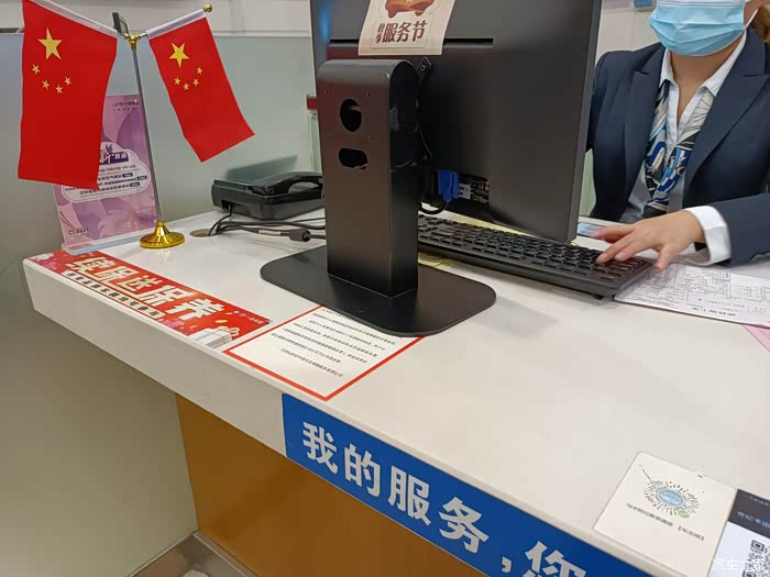 因为车牌号换了,所以这次来保养还要提供行车证,变更一下车辆信息,现在是国庆节,到处都可以看到小红旗