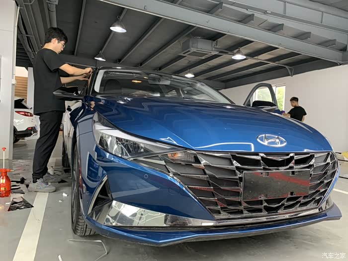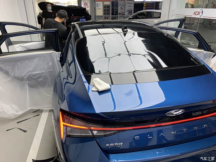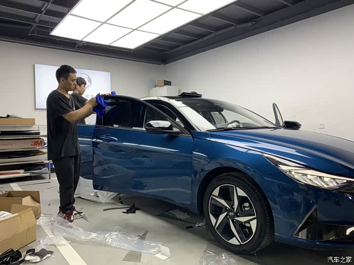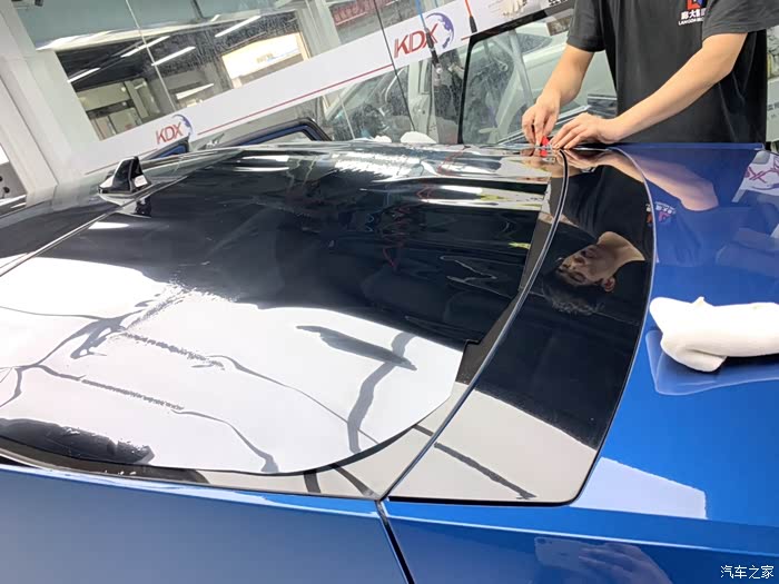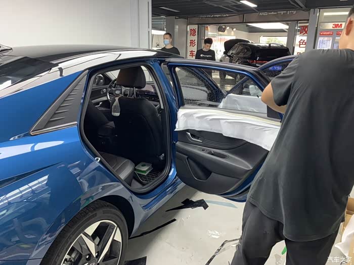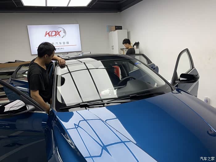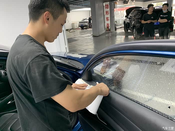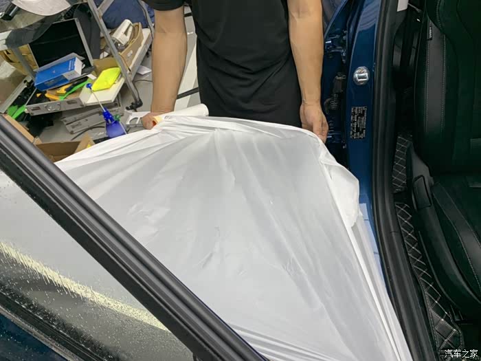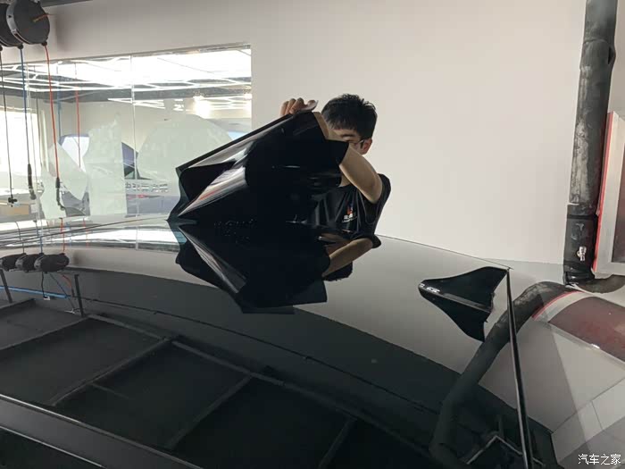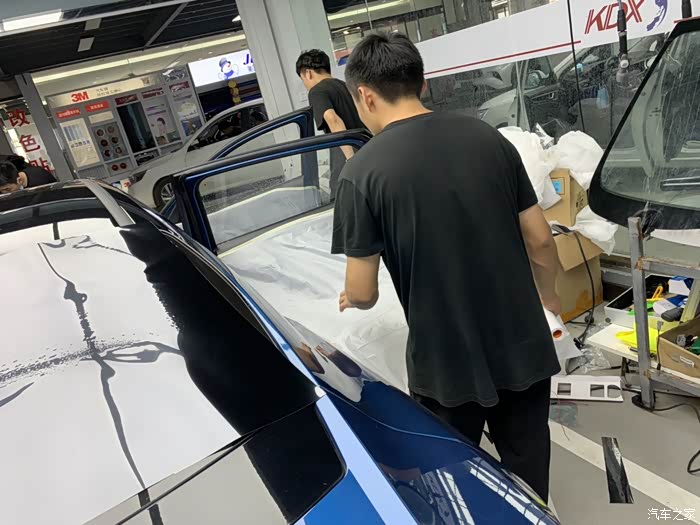 给一台车贴膜可不是一个师傅就能完事的,要好几个师傅一起弄啊!