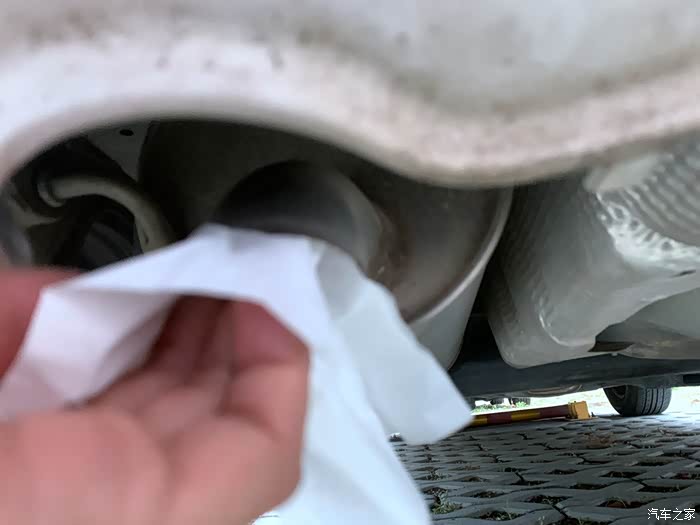轻轻擦拭排气筒,没有任何黑色颗粒说明发动机是没有积碳的。爱车清洗节气门及进气道已经完成了,感谢车友们观赏。