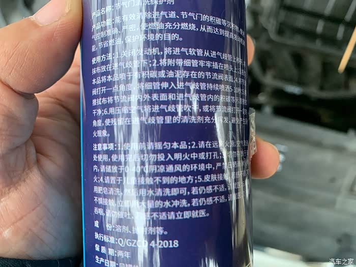 使用节气门清洗保护剂进行清洗。