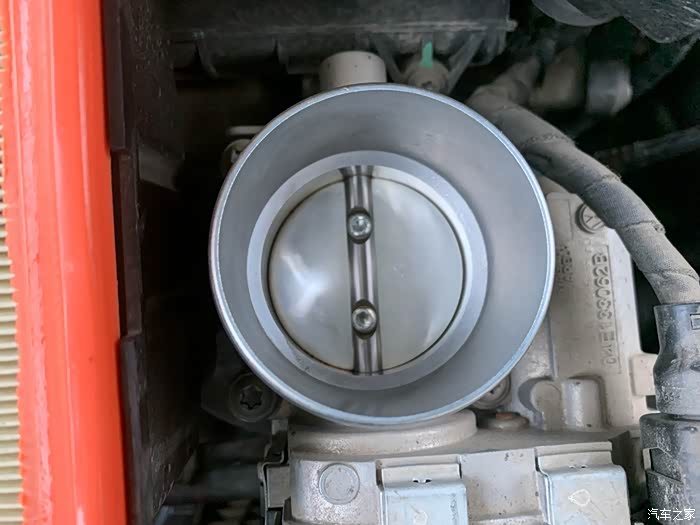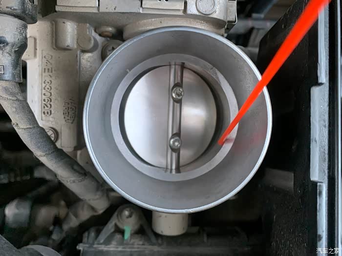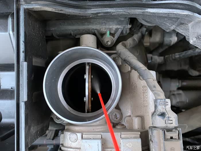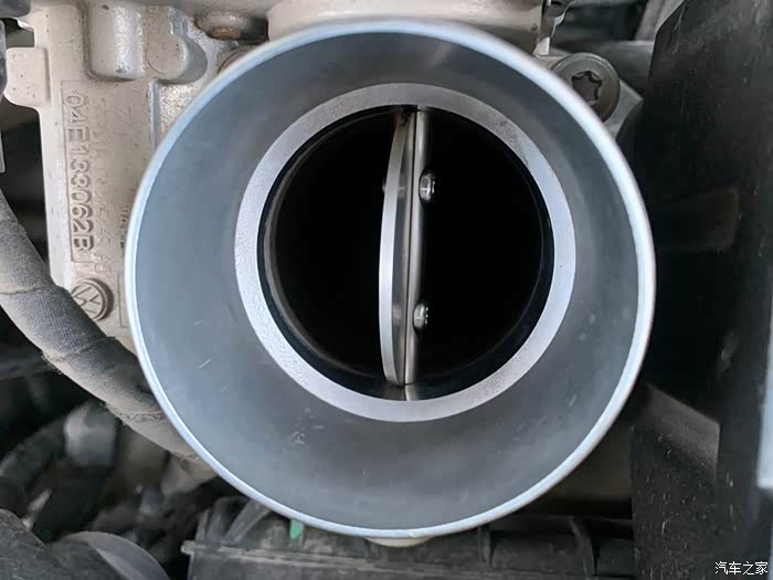 可以看到节气门周围有一圈黑色的污物,这些污物就是积碳,加大了节气门开度。