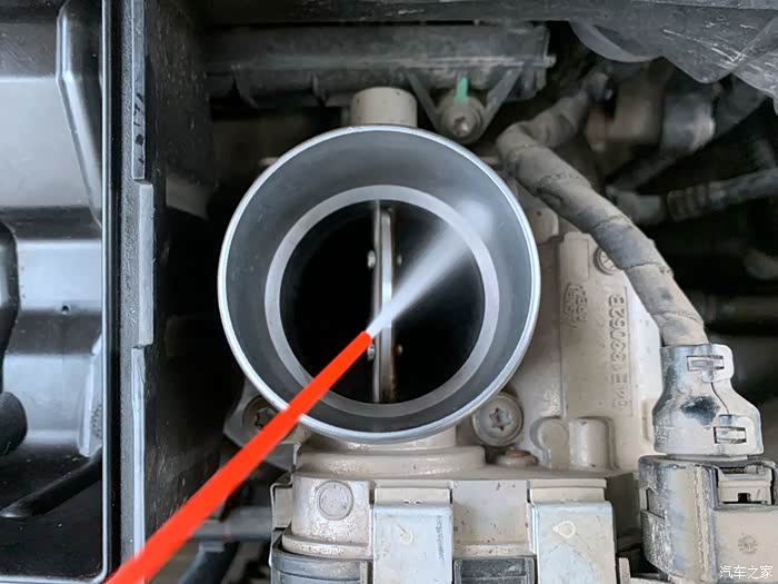 将节气门清洗保护剂喷洒在节气门内壁上。