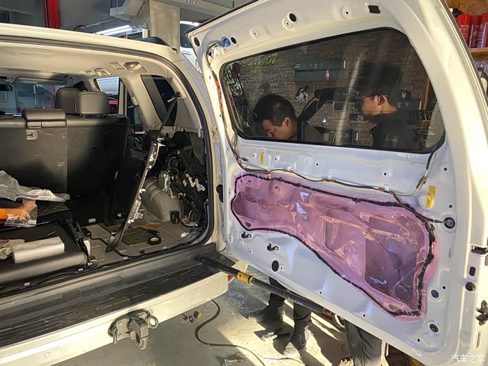 倒车射灯花了不少功夫,拆了第三排,电动座椅下方取电,然后架子也没有匹配的,买了FJ的拿来改