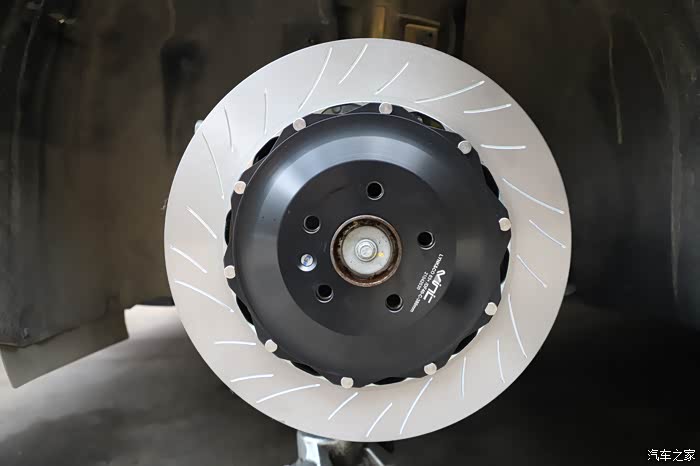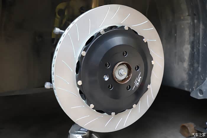 改装的380mm刹车盘,比原车的盘大上不少,这个重量对比感觉差不多,盘大了一拳重量却相差不多,材质上区别不太一样