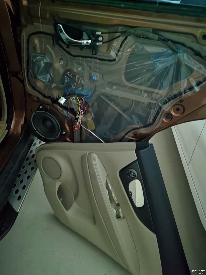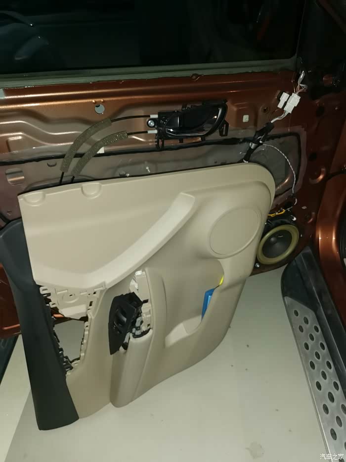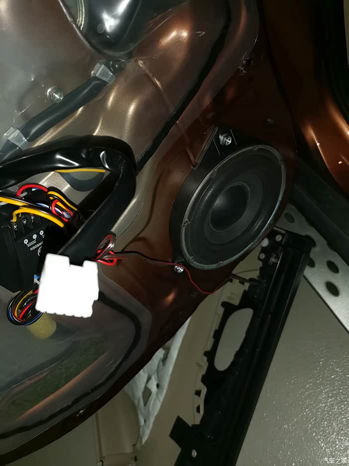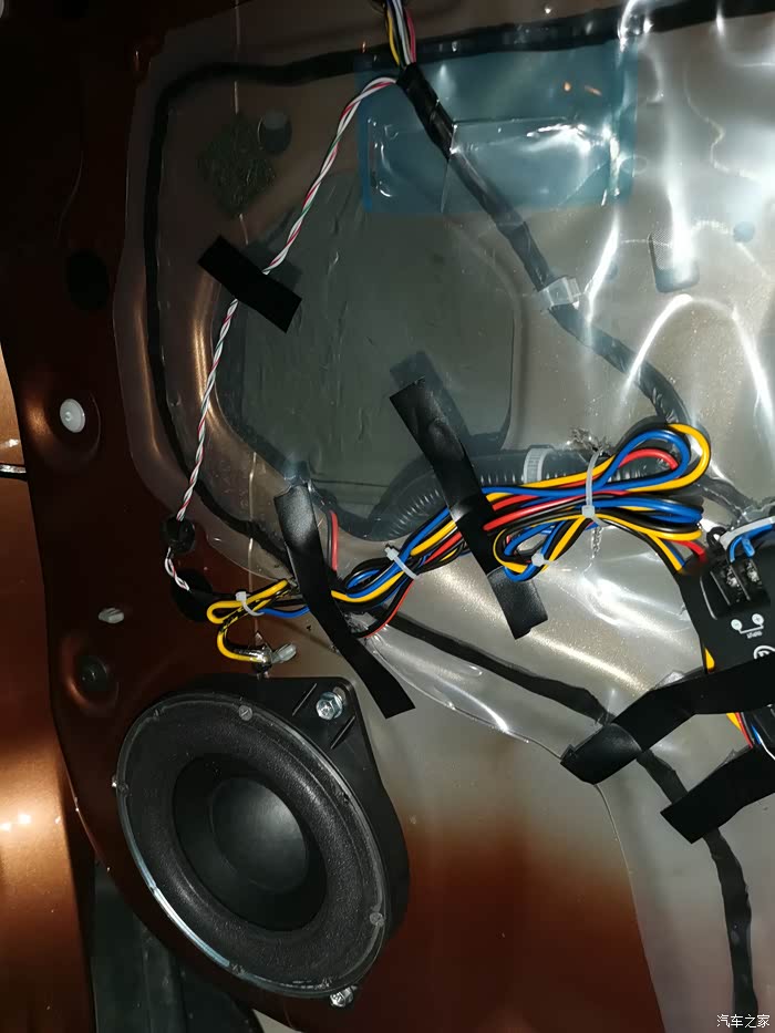 换喇叭是个细活,线要捆好扎紧,不然容易引起车门共振