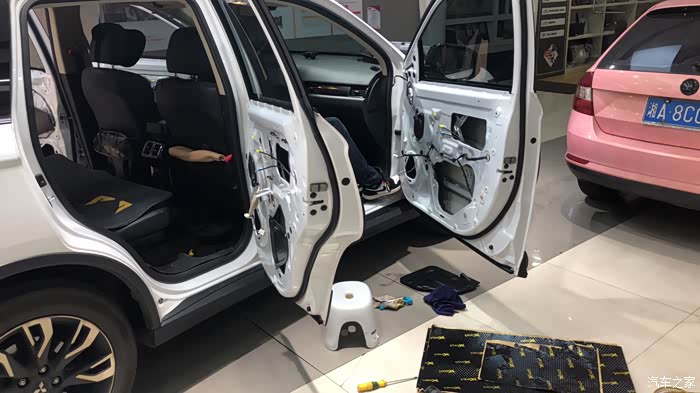 拆开门板开整,指定老板亲自安装。原车隔音棉就是一层薄海绵,建议大家做个隔音。整体效果会非常好!