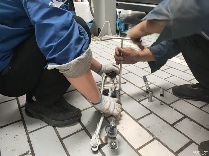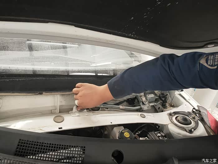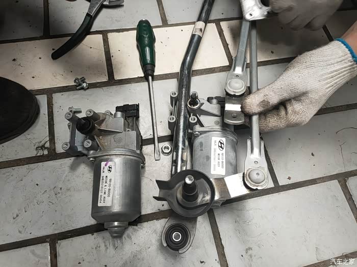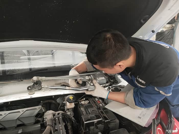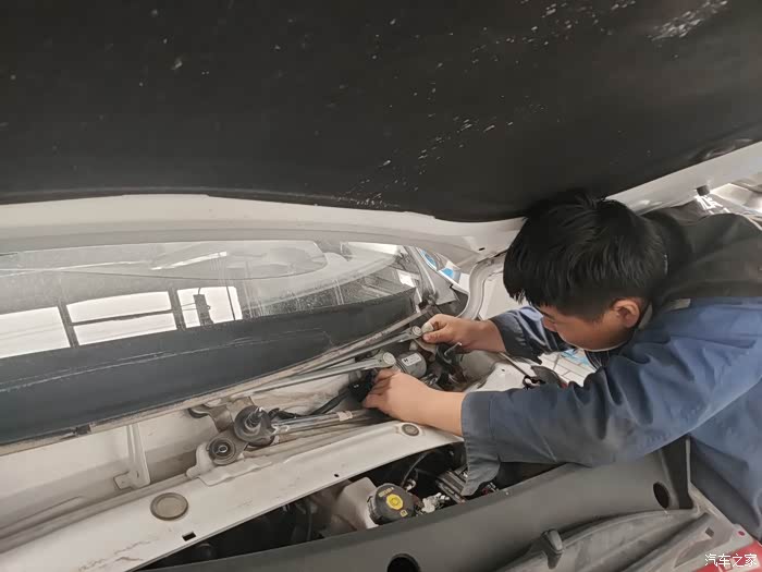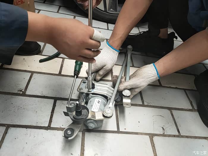 车间师傅拆下了原车的雨刷器电机,更换新的。