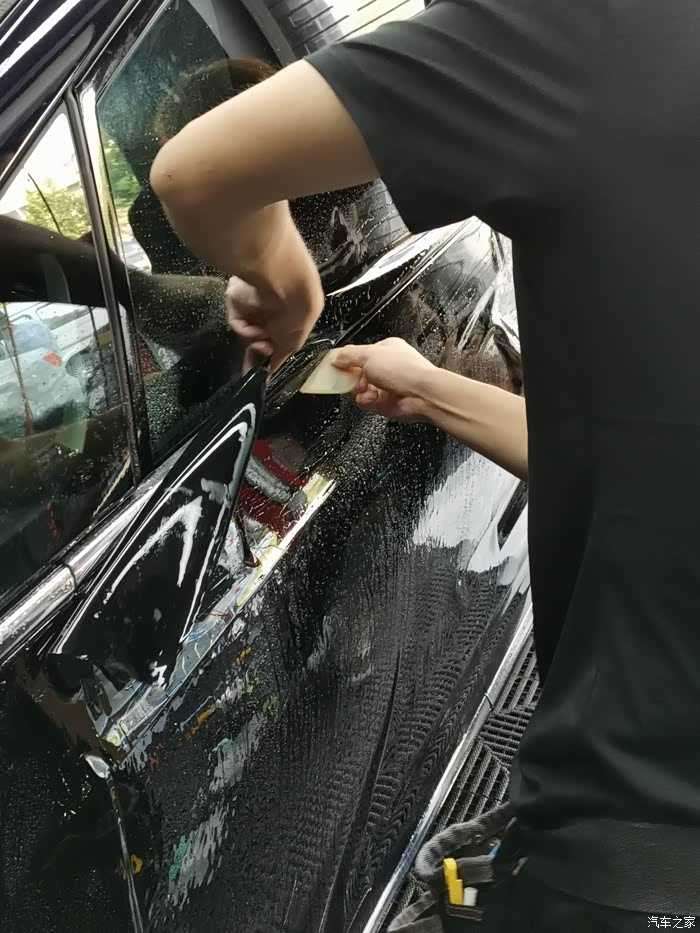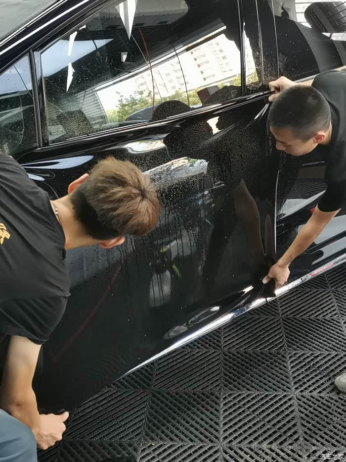 贴膜施工中~这个膜很厚,一定要找专业的师傅贴,不然极其容易翘边!