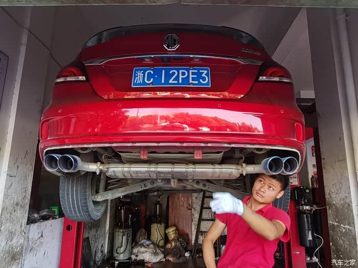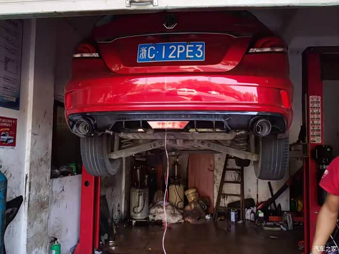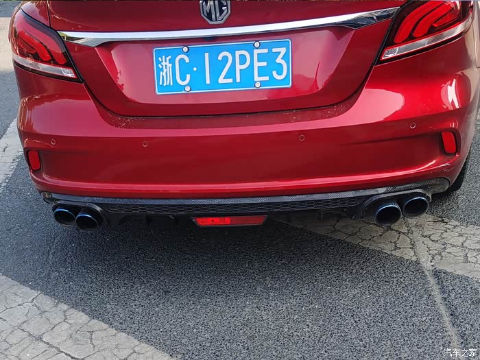 这台名爵6买来的时候原厂是的排气口是隐藏式的,感觉和这个运动风定位不太搭配,所以没多久就改了四出的尾喉和扰流板,并加了前铲和小尾翼,而且大多数人都是这么改的,也符合主流的审美