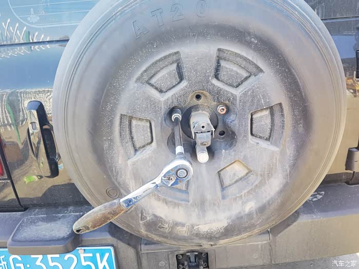 去掉后面的挡板就可以看到有两个螺丝,下面就是摄像头,把那两个螺丝去掉,那两个螺丝是18号的。我这是装的假备胎,如果说是真备胎的话,男人车装的话是可以的。如果说是一个女人的话,就有点费劲了。