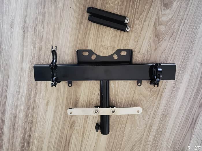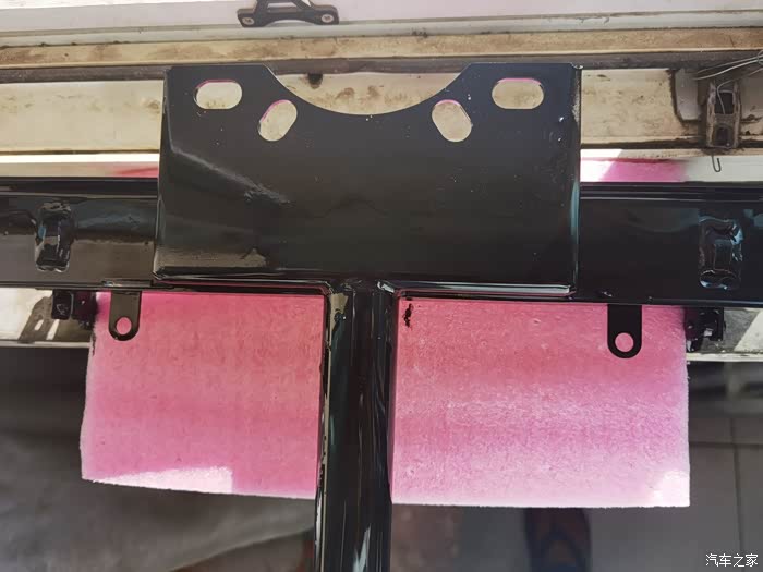 这就是喷好以后出来的效果图。上面是放牌照的,然后还有两个卡子是放铁锹的,最上面的那个是放旗杆的。
