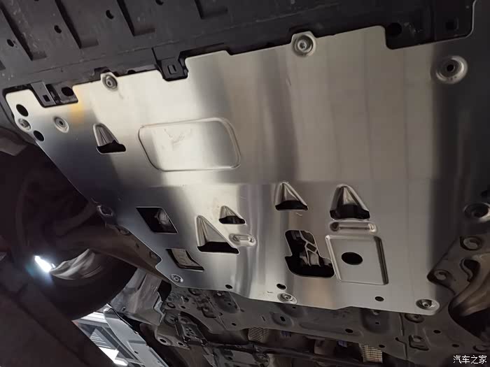 这是我后面加装的原厂发动机下护板,合金材质的,关键是螺丝不会生锈,还有通风风道,可以对发动机高温部位进行风冷。