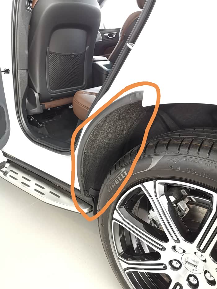 这种就是与车身一致的挡泥板,个人不推荐,时间长了问题就出来。