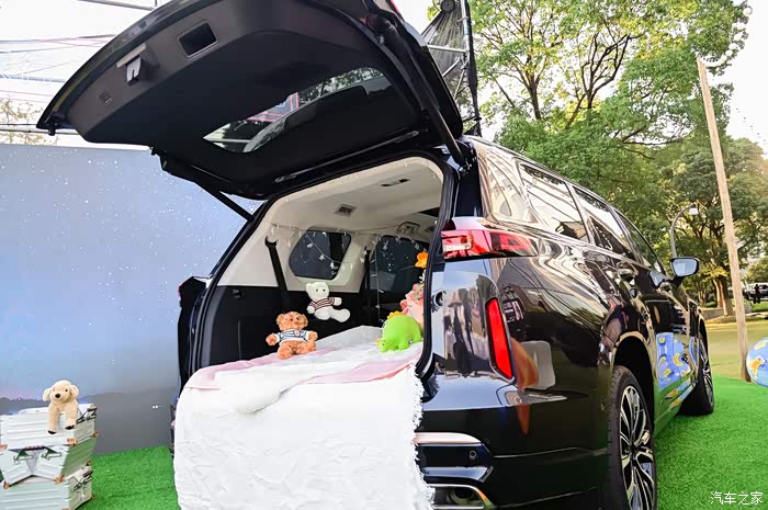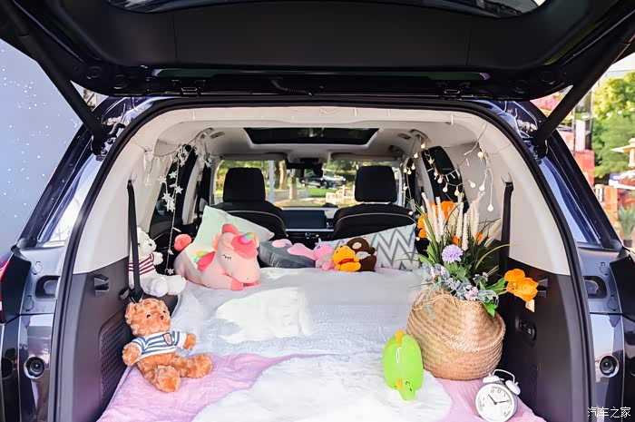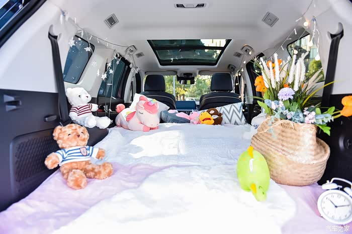 布娃娃、头枕真是应有尽有,揽月的尺寸后排躺进两个人都不成问题,我要是女生如果有人为我这么打扮我想我会嫁给他吧。