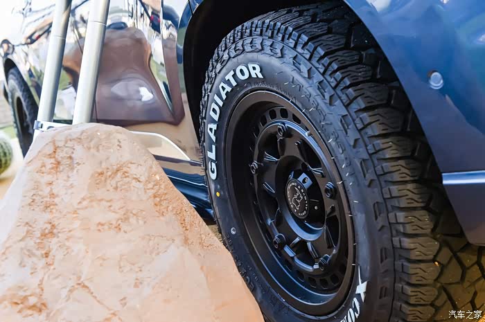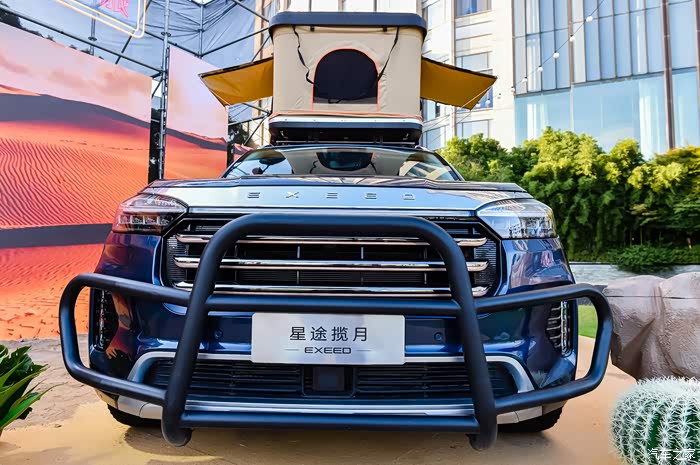 这款车还改装了轮毂和越野轮胎,更加兼备越野能力,其实揽月的博格华纳四驱系统对于一些简单越野路段还是够用的,加装越野轮胎更是如虎添翼。尾部也加装了保险杠,试问这样的星途揽月谁不爱呢。