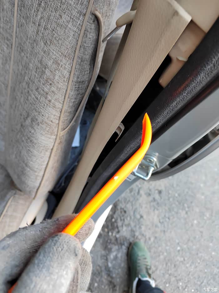 驾驶位门边护板,除了卡扣还有一个塑料螺丝固定。