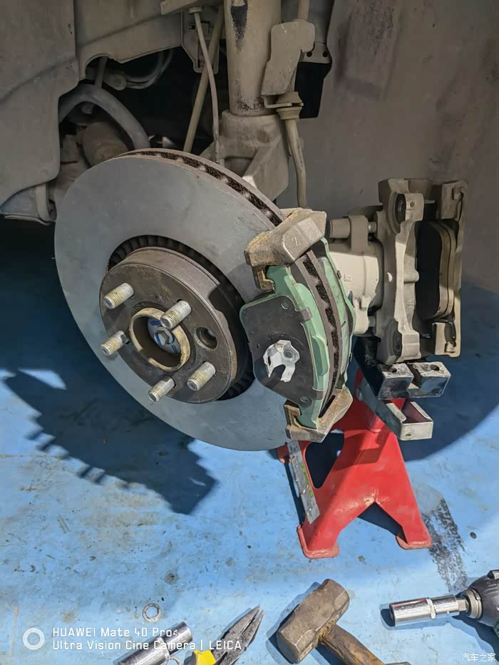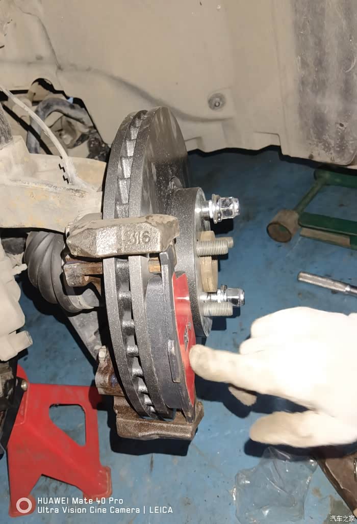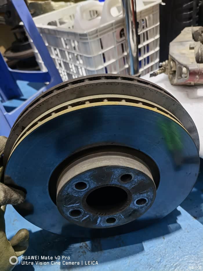 新盘新刹车片,直接装车,一切很顺利……开了两天刹车磨合很均匀,刹车提前了,也高了些,刹车明显比原厂的提升了一个档次,活塞是一样的区别就是刹车片大了些,盘也大了16mm,我改了17寸的毂无视316336了,应麦柯斯群友要求,拿回原厂16寸毂试装316的完美能过,真的是最好的结果了!