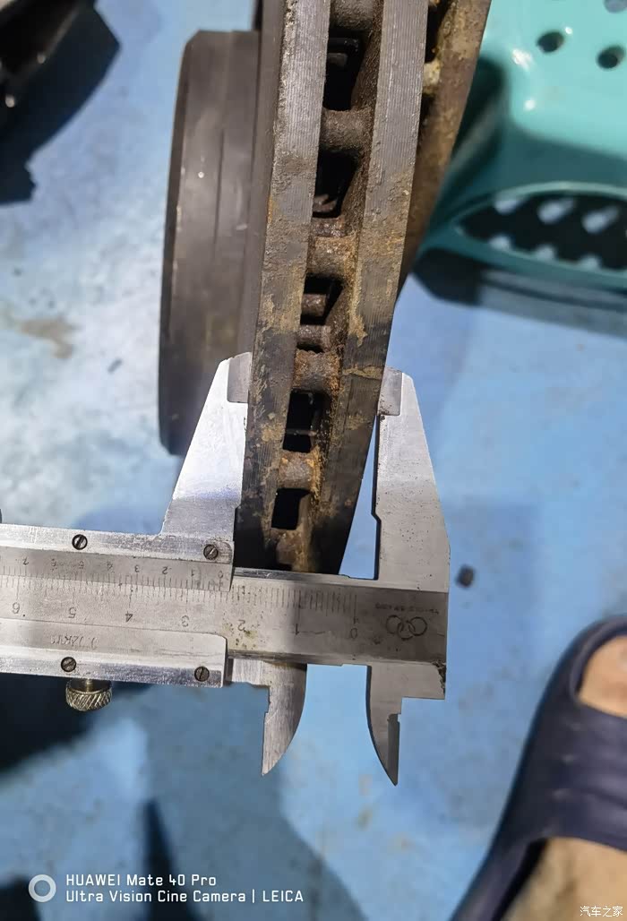 算了降低些要求搞一套316的盘与卡钳吧!!刚拿到盘立马先光盘,没注意检查,两个盘居然大小不一样的错了试装车看有没其它问题,一个盘螺丝孔小了套不进去,一个是对的,可以装,问题再找一个一样的盘还真难,量了一下厚度,26mm不到已经是警戒值了报废品了算了退了吧