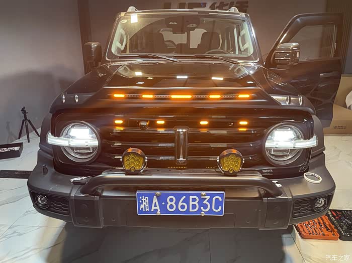 接下来就是见证奇迹的时刻,怎么样有没有很帅气,两层的小黄灯在加上圆形大灯相当有气质,而且夜晚行车也会提高辨识度,为行车安全出一份力,最主要是价格自己能负担的起,感觉我的小坦克越来越有型了,这车开出去绝对满满的回头率,我对这次的改装很满意。
