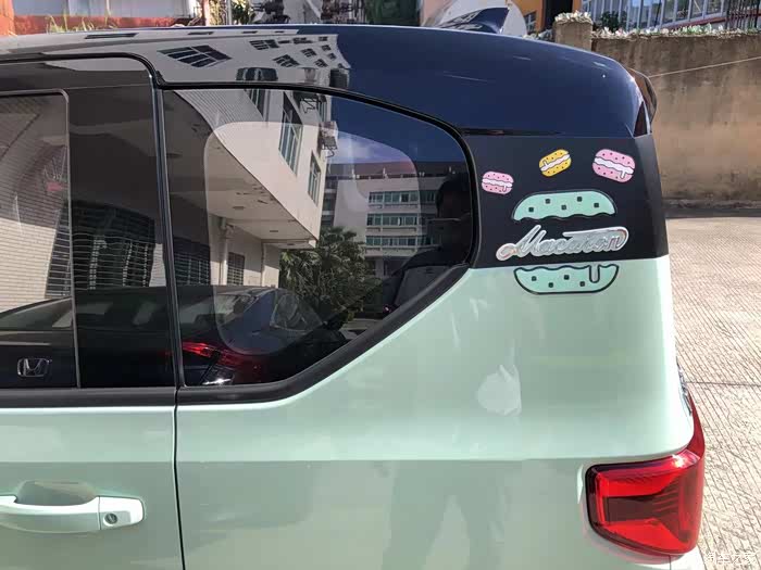 菱菱邦买的甜品贴纸+马卡龙标。左右对称了。但贴纸不知道为什么很容易翘边,不知道有没有什么办法解决。B柱贴了亮色的。