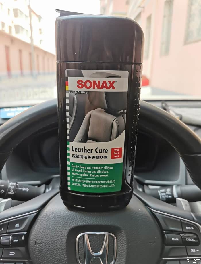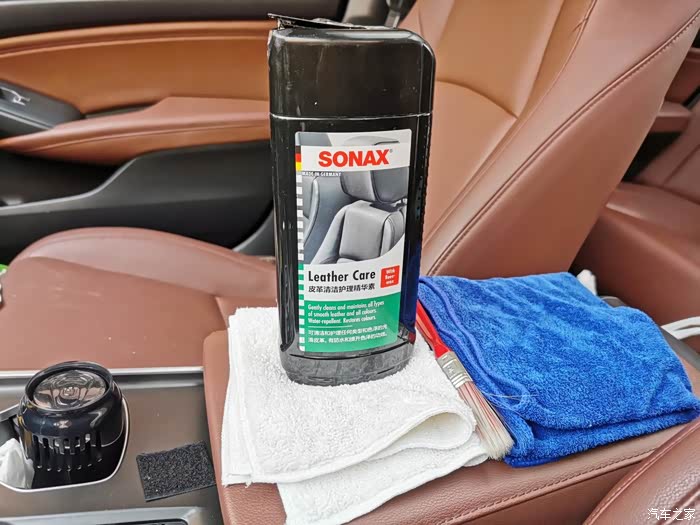 开车感觉真皮方向盘有点老化了,一看座椅也不是那么有光泽了,的确很久没有给爱车做真皮养护了,趁着有时间搞起来!先喷泡沫清洁剂,然后擦拭干净。把皮革清洁护理精华素适量挤在毛巾上,然后用干毛巾均匀擦拭即可。需要注意的是施工的时候要局部施工,一块一块的分区域施工,不能急躁。